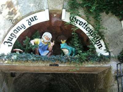 А внутри горы посетители обнаружат настоящий волшебный мир - Гротовую железную дорогу. Входящая в пасть дракона, она ведет через туннель гномов к лестнице, ведущей вниз, в страну сказок.