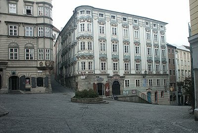 На площади Альтермаркт (Altermarkt - Старый рынок) находится самый старый рынок Линца. Он существует здесь с XIII в. Рядом (справа) - Kremsmünstererhaus. Согласно легенде, здесь умер император Фридрих III.